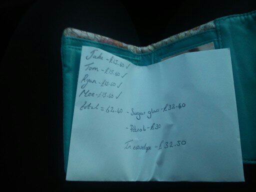 Looking at the site I knew the glass (not on its own) was going to be pricey, sadly it was the cost of the glass, VAT and Delivery that started from £30 so I decided to pick up the glass my self. First I calculated that in total the cups on there own including VAT would be £32.40 and rather than spending the £30 on delivery that wasn't totally guaranteed I wanted to be fair to my Sister who was driving me up to Surrey and allow me and the group pay for her petrol which came to a total of £62.40 I split that amount between the 4 of us which made £15.60 and I collected that from each group member.